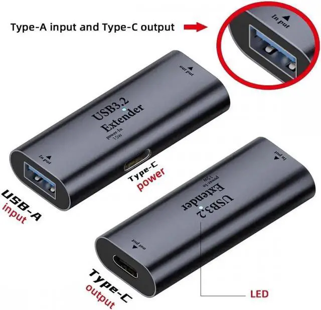 USB 3.0 Repeater Adapter Type-A Female to Type-C Female Extender with Chipset for Camera Printer Computer