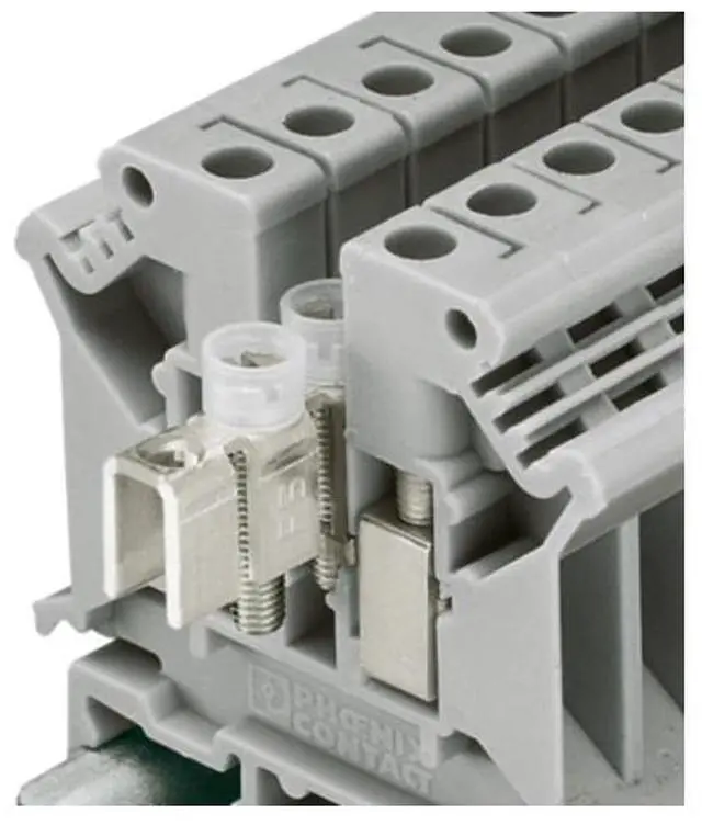 Straight-through terminal block, nominal operating voltage: 800 V, rated current: 32 A, connection quantity: 2, connection method: screw connection, rated connection capacity: 4 mm², cross-sectional area: 0.2 mm² - 6 mm², installation method: NS 35/7.5, NS 35/15, NS 32, color: gray