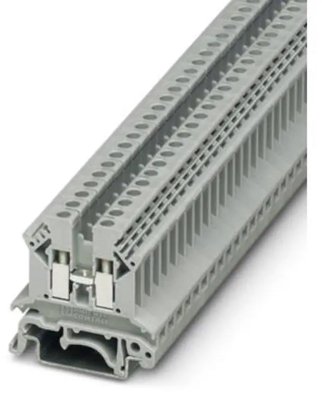 Straight-through terminal block, nominal operating voltage: 690 V, rated current: 24 A, connection quantity: 2, connection method: screw connection, cross-sectional area: 0.2 mm² - 4 mm², installation method: NS 35/7.5, NS 35/15, color: gray