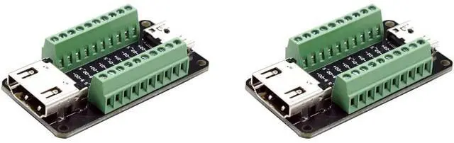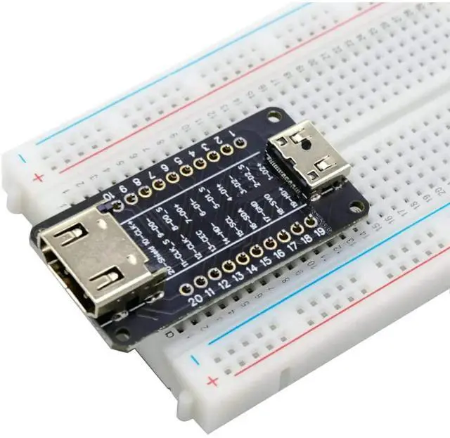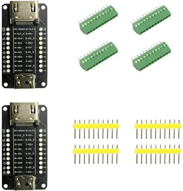 It connects all 20 pins of the HDMI Type A female and Mini HDMI Type C Male adapters to the screw terminal block for easy test, prototype and breadboard connections.