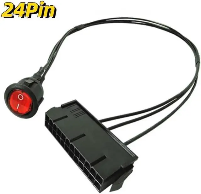 50cm Cable Copper Tin Wire 24-Pin Female ATX PSU PC Power Supply Starter Tester Start Up Jumper with ON/OFF Switch