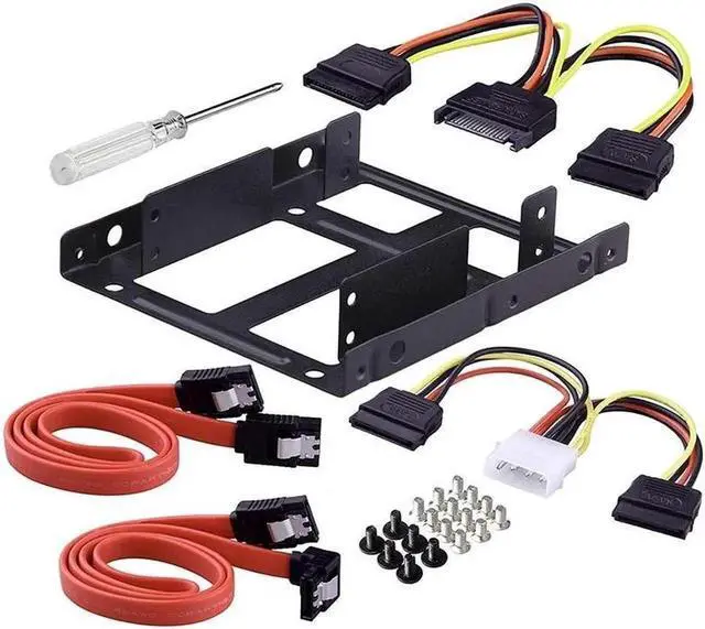 2.5 Inch To 3.5 Inch 2-Bay External HDD SSD Bracket Metal Mounting Kit Adapter Support with SATA Data Power Cables Set