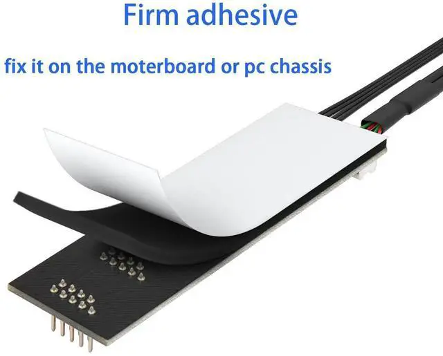 Self-Adhesive 9 pin Motherboard USB Splitter for easy installation, automotive adhesive tape is attached on the back, can be directly fixed on the mainboard or PC chassis.