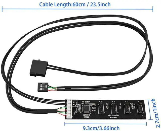 USB2.0 9Pin Header Splitter: the USB2.0 1 to 4 splitter can solve the lack of your interface USB ports of your motherboard. Convert a USB2.0 9 Pin on motherboard to four 9Pin ports.