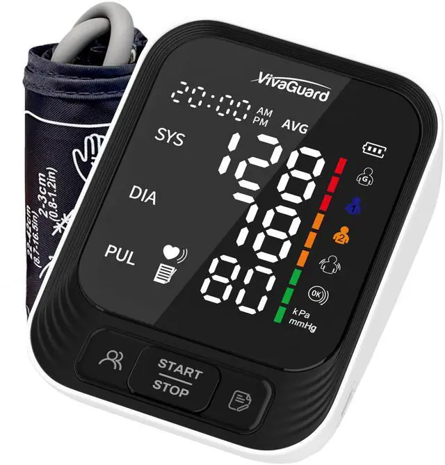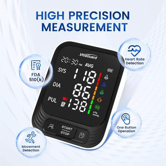 VivaGuard Blood Pressure Monitor for Home Use,HR Detection Blood Pressure Machine Upper Arm Cuff(8.7"-16.5"),Automatic Digital BP Machine with Large LCD Backlight Display,2x199 Memory for 2 Users