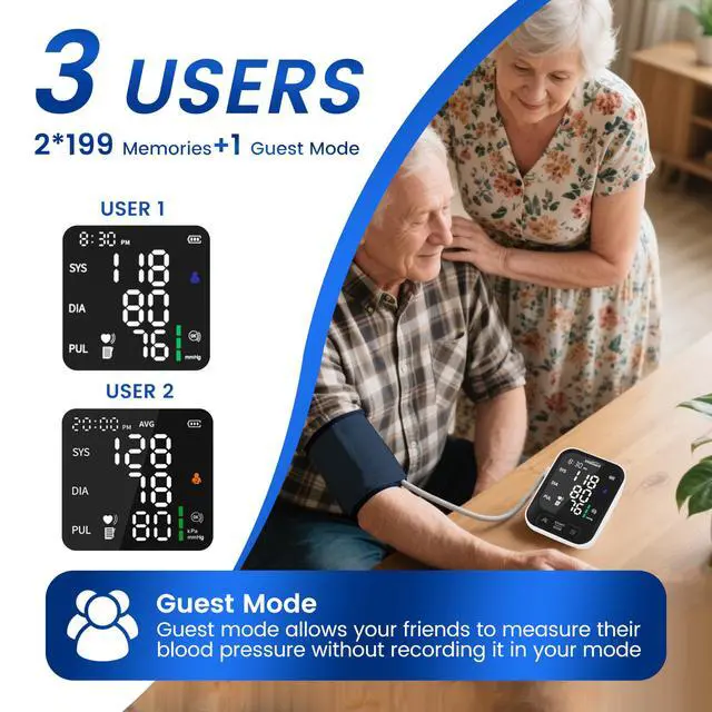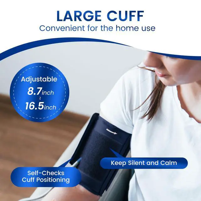 - [Two Power Supply + Comfy Fit]: Use 4 AAA batteries or a Type-C cable(both are included) to keep running anywhere. The large automatic arm cuff (8.7-16.5) adjusts snugly for accurate readings, suitable for most arms, the blood pressure cuff is made of high-quality materials, soft and comfortable, fitting the skin without any discomfort, and it can remind you if its too loose or youre moving during measurements.
