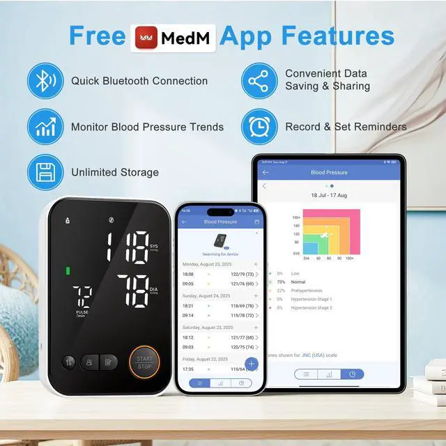 Bluetooth-enabled Syncs measurements to your smartphone for easy tracking, trend analysis, and sharing with your doctor.