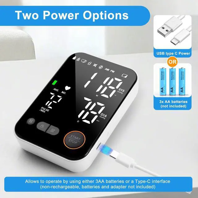 Low battery alert prevents unexpected shutdowns. Dual power options: 3 AA batteries or included Type-C cable.
