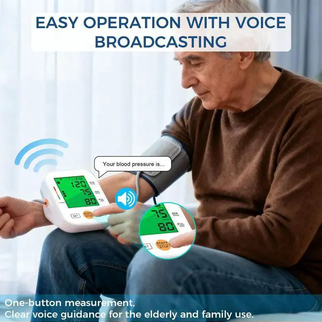 Hear Your Results: No need to check the screen every time—a friendly voice tells you your blood pressure with one button press.