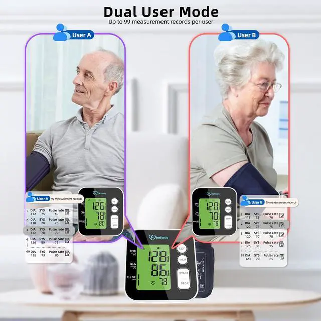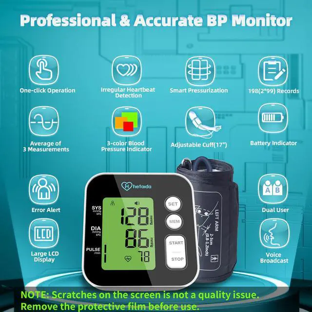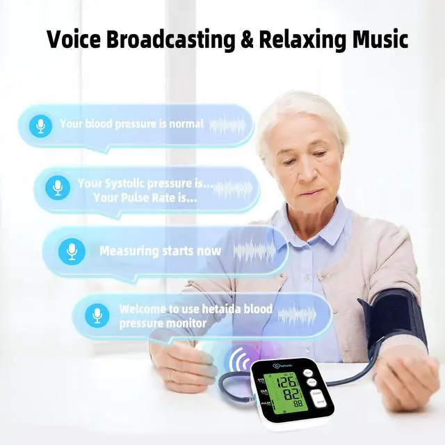 The hetaida D6607US blood pressure monitor comes with a large backlit screen for clearer and more intuitive readings. More convenient for the elderly.