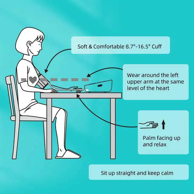 Our intelligent BP monitor use advanced smart pressurization technology which is more reliable. When taking measurements, sit up straight and put your left hand on the table with the palm facing up and relax. For more please refer to Tips for Use.