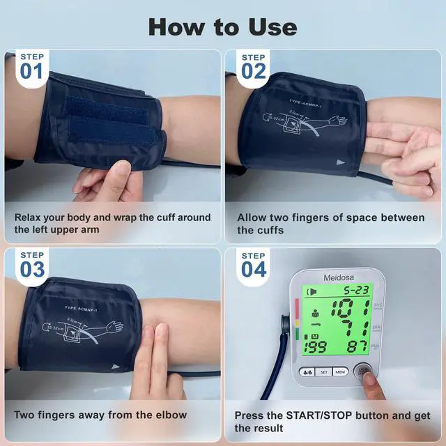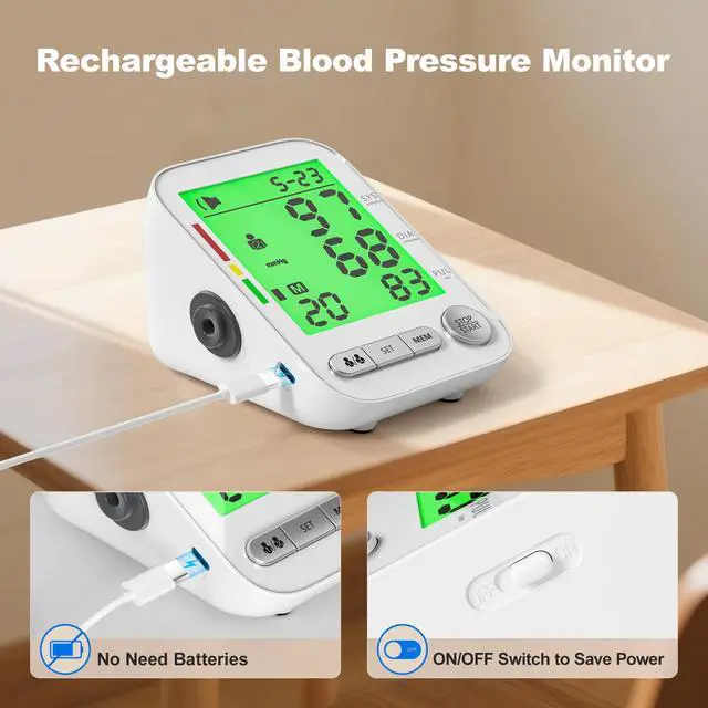 The blood pressure monitor is equipped with a large, high-definition display ensuring readability even in low-light conditions. You can effortlessly view on-screen readings or related reminders while the bp monitor detects low or high blood pressure