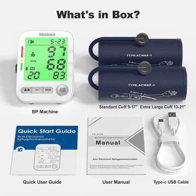 | Included Components | 1* Blood Pressure Monitor, 1* Quick User Guide, 1* USB Cable, 1* User Manual, 2* Cuffs |