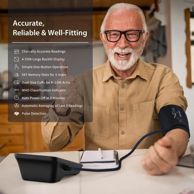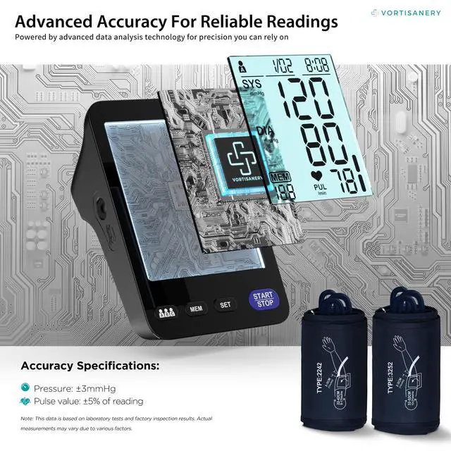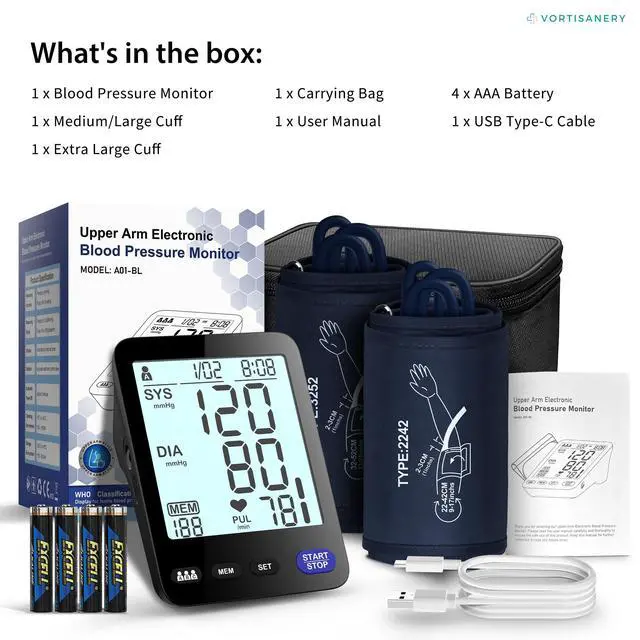 The A01-BL blood pressure monitor comes with two cuff sizes (9-17 inches and 13-21 inches) to ensure a snug fit for different arm sizes. A well-fitted cuff is key to obtaining accurate and consistent measurements. Whether from medium to extra large arms, the dual cuff options provide a comfortable and precise monitoring experience for everyone.
