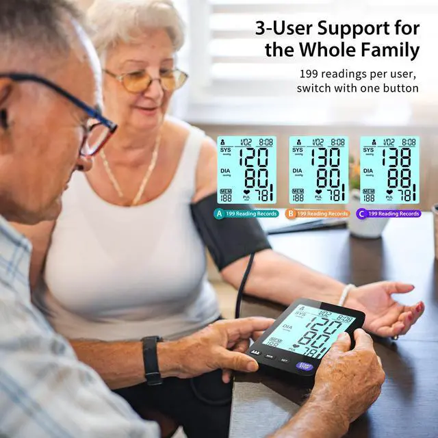 The A01-BL features an extra-large font that highlights the 3 key readings: systolic pressure, diastolic pressure, and pulse rate. Its clean, clutter-free interface ensures seniors can easily read and understand their results without confusion. Say goodbye to complex, overwhelming displays. A01-BL is designed for simplicity and clarity.