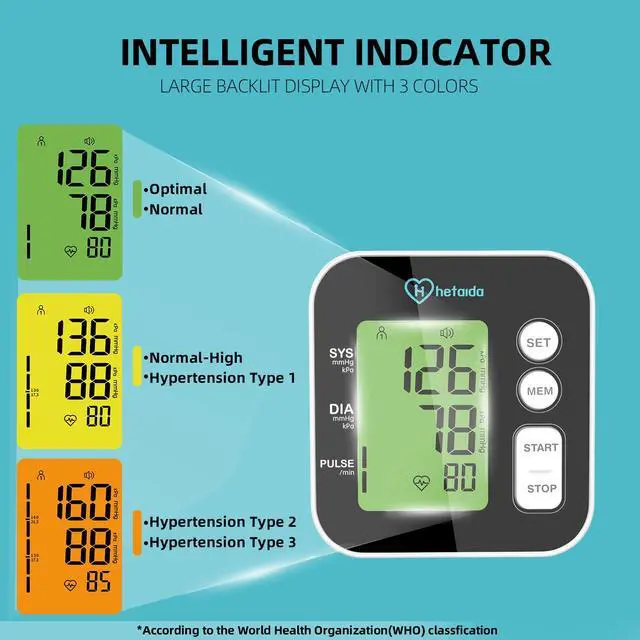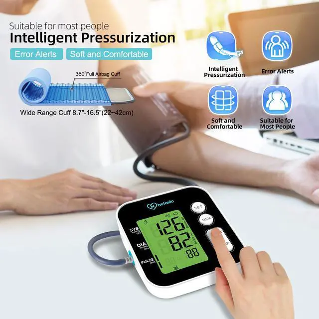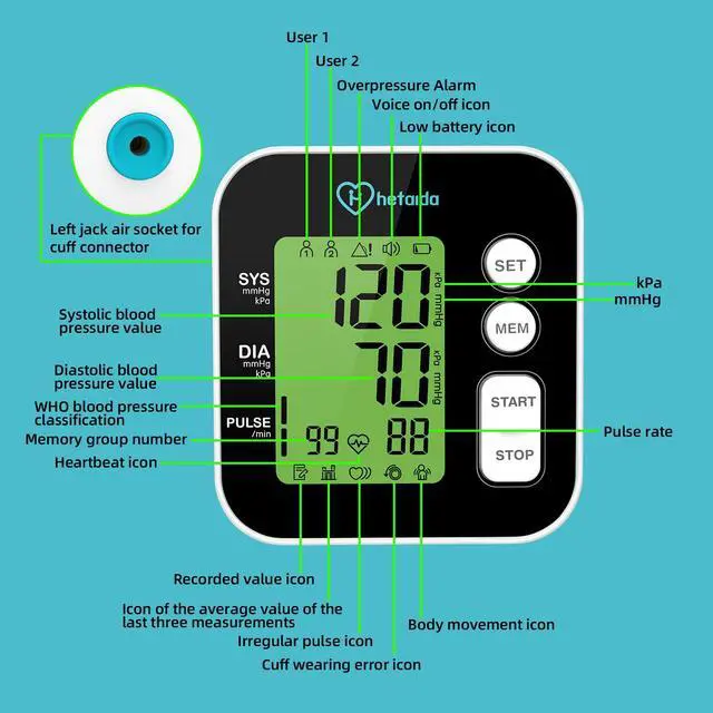 Extralarge LCD display with clear numbers for easy reading, even at night. Builtin voice prompts guide you stepbystep for correct positioning and operation