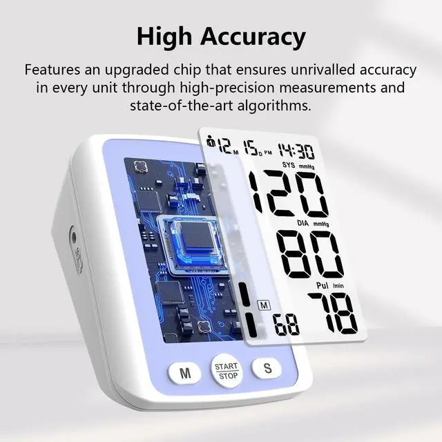 High Accuracy: The sphygmomanometerblood pressure monitor utilizes the latest chips and algorithms, and each blood pressure machine is individually calibrated to ensure unparalleled accuracy.