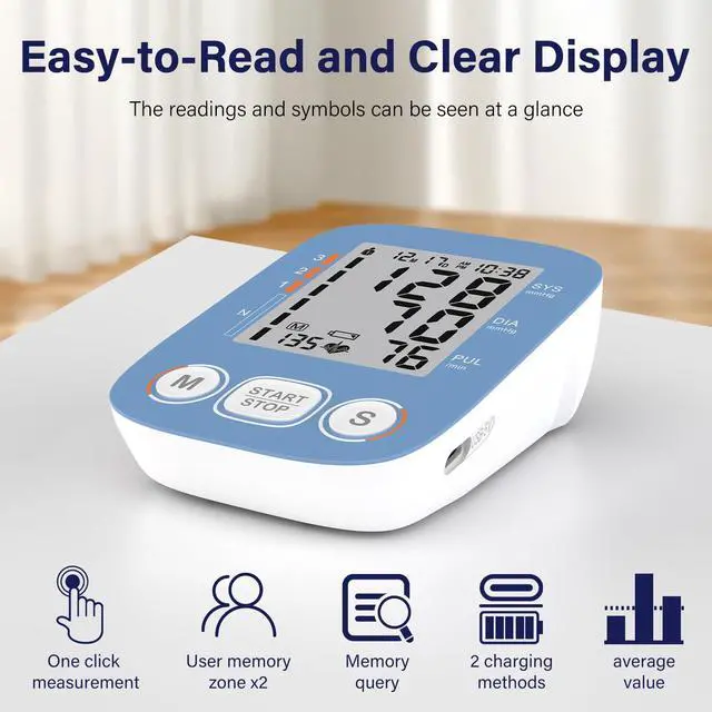 Large clear display: The blood pressure monitor is equipped with a large, high-resolution display. So you can easily see the readings on the screen.