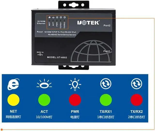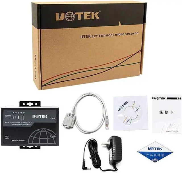 UT-6602 serial communication server, also called terminal server or serial server, is a converter between asynchronous serial port RS-232/422/485 and Ethernet. It is a standalone intelligent device with CPU and embedded OS and complete TCP/IP protocol stack. It completes transparent data transmission between RS-232/422/485 and Ethernet in both directions and allows RS-232/422/485 serial devices to connect to the network immediately.