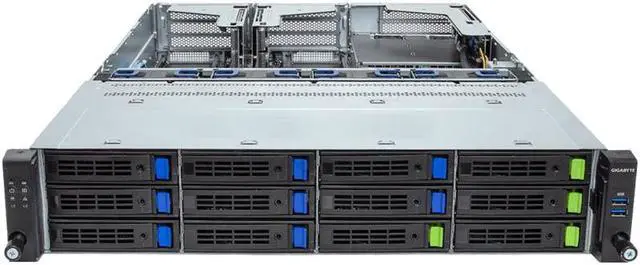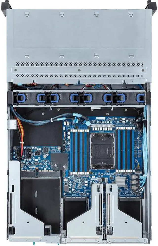 The R263-S30 (rev. AAC1) is a 2U rack server manufactured by Gigabyte. It is powered by 4th/5th Generation Intel Xeon Scalable processors and supports up to 2TB DDR5 ECC memory. It has 12 hot-swap drive bays, including 4 x 3.5" / 2.5" Gen4 NVMe/SATA/SAS hot-swap drive bays and 8 x 3.5" / 2.5" SATA/SAS hot-swap drive bays. It also has 2 FHHL PCIe Gen5 x16 slots and 2 OCP 3.0 Gen5 x16 slots for expansion purposes. The server is equipped with 4 x 80mm 18, 300 RPM system fans and 1300W redundant 80 Plus platinum power supplies.