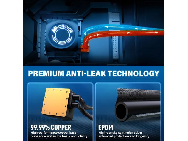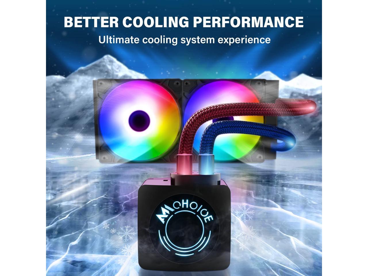 - Double Industrial Grade EPDM Rubber Sealing Anti Leak: AMCHOICE CPU water cooler adopts professional PPS material, the new pump design with upgraded internal components for improved resistance to wear and tear for longer-lasting performance. Using double-sealing technology enables industrial-grade anti-leaking. what's more, the AIO water loop is sealed, don't worry about refilling. And also, the premium and durable design enhance prevention and the longevity of the liquid cooler