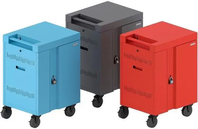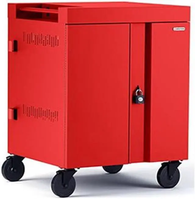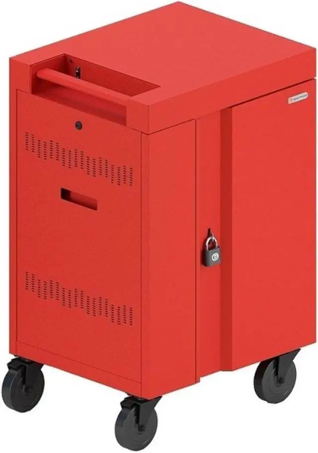 Bretford CUBE Cart Mini Charging Cart AC for 20 Devices, Red Paint - 2 Shelf - Push Handle Handle - Steel - 24" Width x 21" Depth x 37.5" Height - Red - For 20 Devices