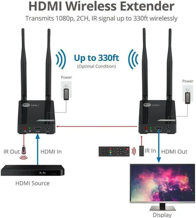 • 5GHz wireless technology reliably extends HDMI signals up to 330ft away with IR remote control, 1080p resolution, 5G channel auto-scan ensures the strongest interference free signal for crystal clear video quality