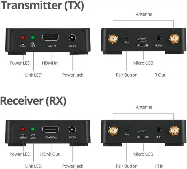 • Advanced 5G wireless technology with channel auto-scan determines the least congested wireless channel to ensure the strongest and most reliable wireless signal and crystal clear video output. Note: Power cycle (power On/Off) both TX and RX units if the video performance is not optimal