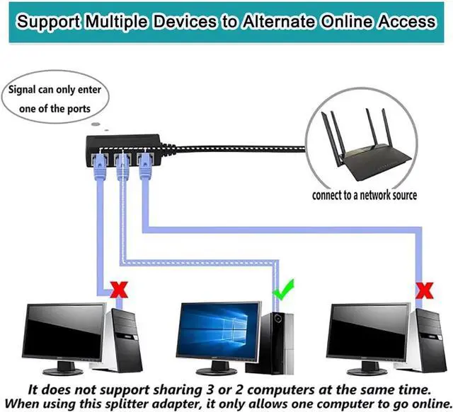 This is a high quality product with PCB board inside. But Beware that it will not make two Ethernet ports from one, meaning that you cannot use two computers at the same time using this splitter. 1.ONE AT A TIME doesn't support all computer to connect onto the internet simultaneously