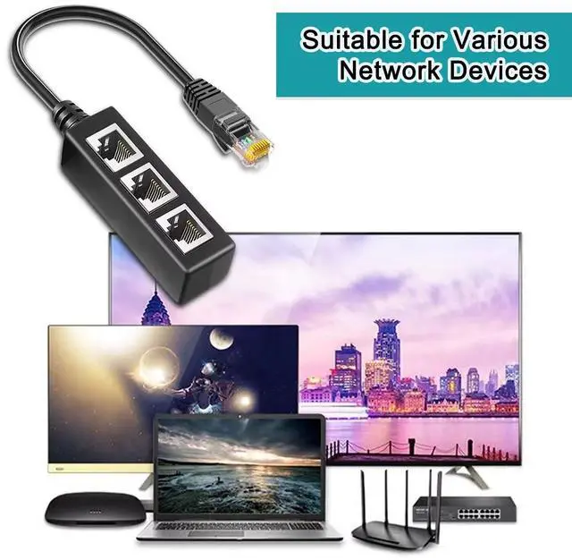 1.This 3-to-1 RJ45 Splitter Cable Adapter increases the number of RJ45 network connections on an RJ45 outlet;