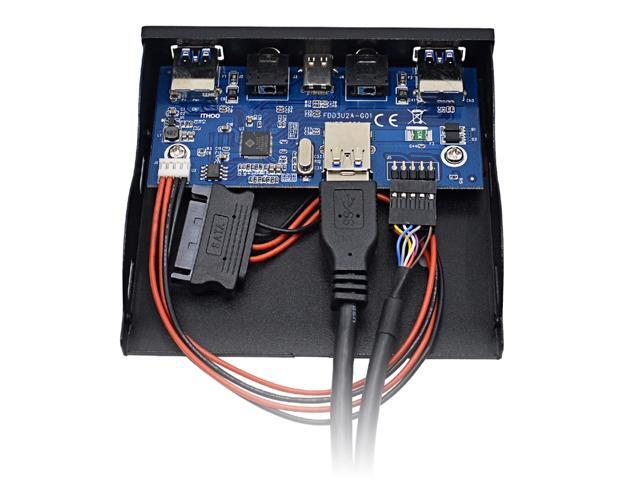 Internal USB 3.1 Gen 1 Type C + 2 x USB 3.0 Port Hub Front Panel w/ HD Audio Mic Jack for Desktop PC Case 3.5" Floppy Bay Mount