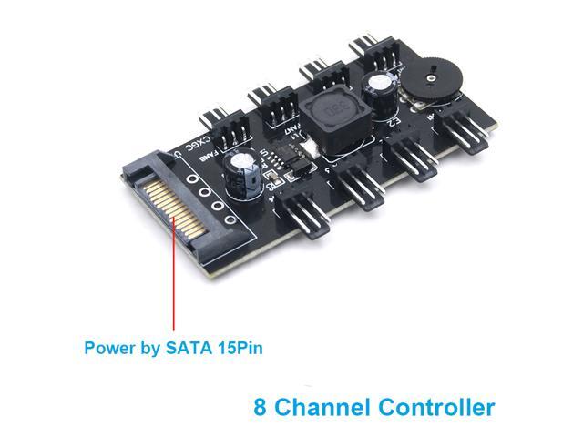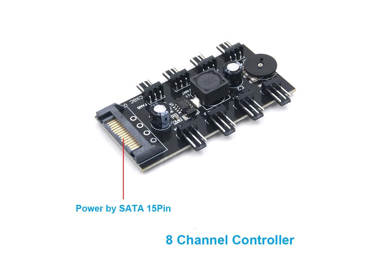 8 Channel Computer PC Case CPU Cooler 3pin cooling fan speed temperature controller, 8 Way 3 pin Fan Hub Power Supply Splitter by SATA 15pin