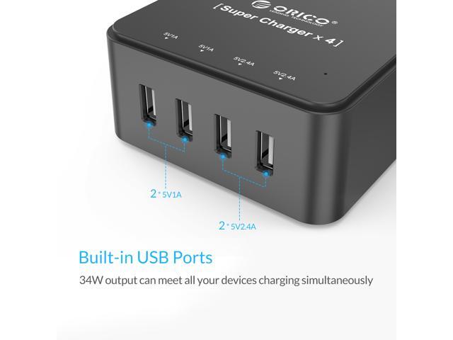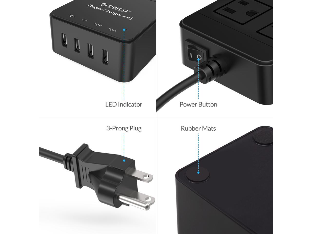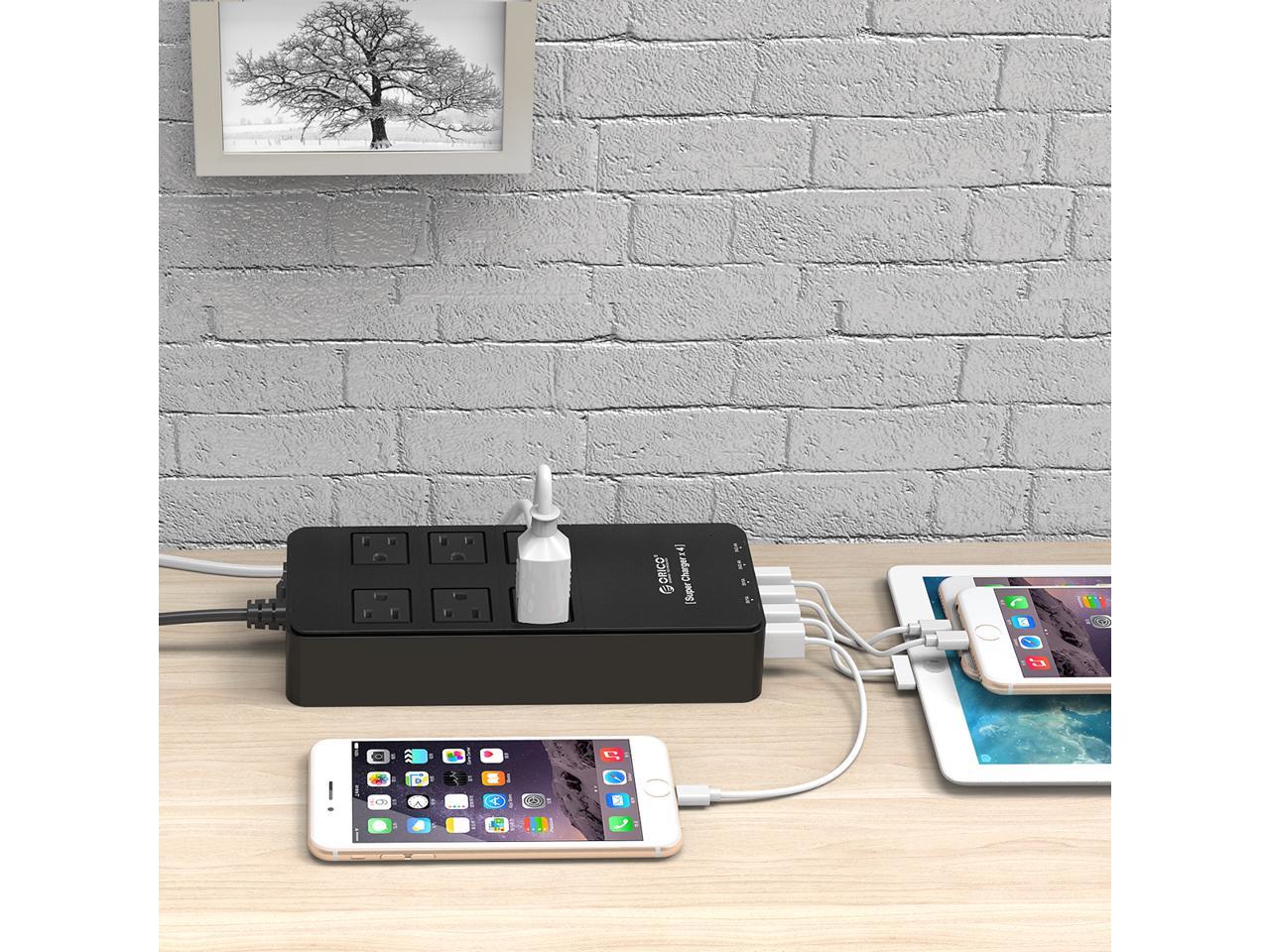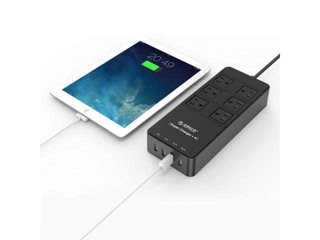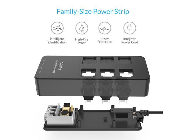 ORICO 6 Outlet Power Strip with Surge Protector, Built-in 5 Ft. Cord, 4 USB Intelligence Charging Ports (2*5V2.4A + 2*5V1A) for iPhone, iPad, Galaxy S6 / S6 Edge and More - Black (TPC-6A4U-US-BK)