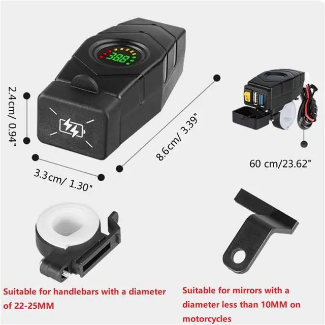 5. Suitable for electric motorcycles handlebars with a diameter of 22-25mm/0.86-0.98" and mirror bases within a diameter of 10mm/0.39"