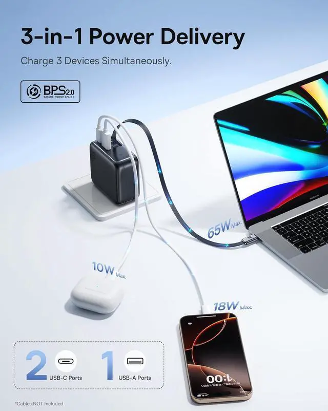 100W Ultra Fast Charging: Supports full-speed 100W fast charging for laptops such as MacBook Pro/Air, charging a MacBook Pro 14" M4 Pro up to 54% in just 30 minutes when single conect, it also can power up two macbook air simultaneously.