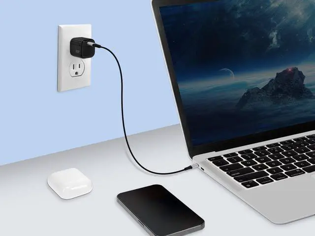 Samsung Super Fast Charging (NOTE: requires a 5A cable), charge the MacBook Air laptops from 0% to 72% within an hour, and charge the Apple mobile phones and iPad Pro tablets from 0 to 56% in 30 minutes. It also supports all other laptops that use 45W of power and is universally compatible with USBpowered devices regardless of brand or manufacturer. The ultracompact, lightweight design helps declutter your space and is easy to pack for travel. This charger is ETLcertified to protect from overheating, overcharging, excessive current, or short circuits.