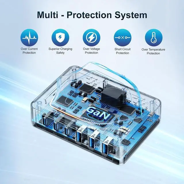 Latest GaN III Chip Technology Charging Station: This USB-C charger utilizes 3rd generation GaN III chip technology, built with a multi-protection system and high-quality microchips. Gallium Nitride (GaN) offers higher energy efficiency, stronger radiation resistance, and upgraded heat dissipation.