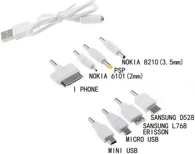 1 Set USB To 8Pcs DC Power Plug Charger Adapter Cable For Mobile Use White Kit P20