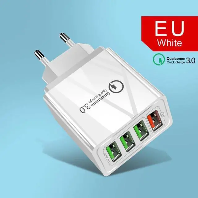 Description:1.4-port USB fast charger, multi-function, (compatible with Samsung AFC Huawei FCP QC3.0), support QC3.0 fast charge protocol and backward compatible with QC2.0 Full Samsung S10 1.7 hours Huawei Mate20 1.8 hours (ps: ensure mobile phone Support fast charge protocol and the data line can pass 3A current to achieve fast charge)