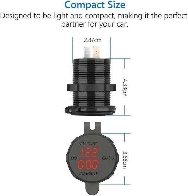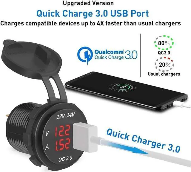 Broad CompatibilityThis USB charger socket fits for DC 12-24V car, boat, marine, motorcycle, ATV, RV etc. Suitable for