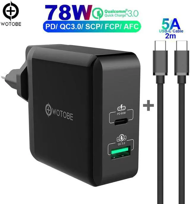 2 Port 60W USB-C Power Adapter 2 Port 60W TYPE-C USB-C Power Adapter,1Port USB C PD60W QC3.0 Charger For USB-C Laptops MacBook Pro/Air iPad Pro,and 1port USB A QC3.0/SCP/AFC for huawei Samsung iPhone