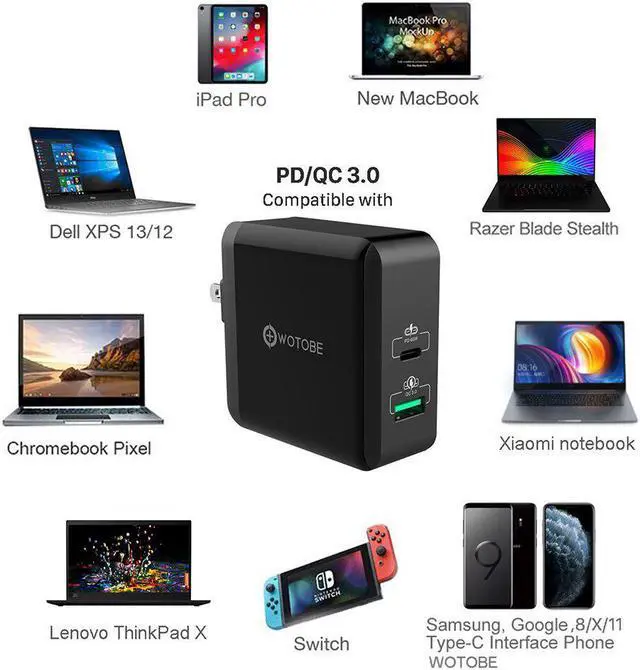 PD3.0 Cell Phone QC TYPE-C USB Charger for MacBook Pro / DELL XPS 12/13 / Samsung Note 8 S9 S10