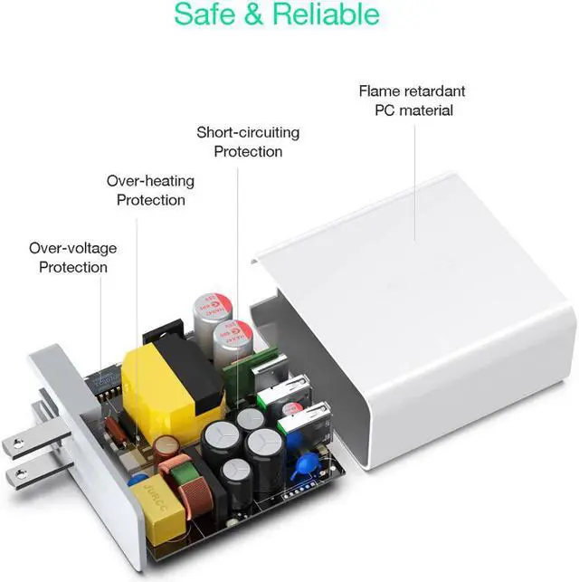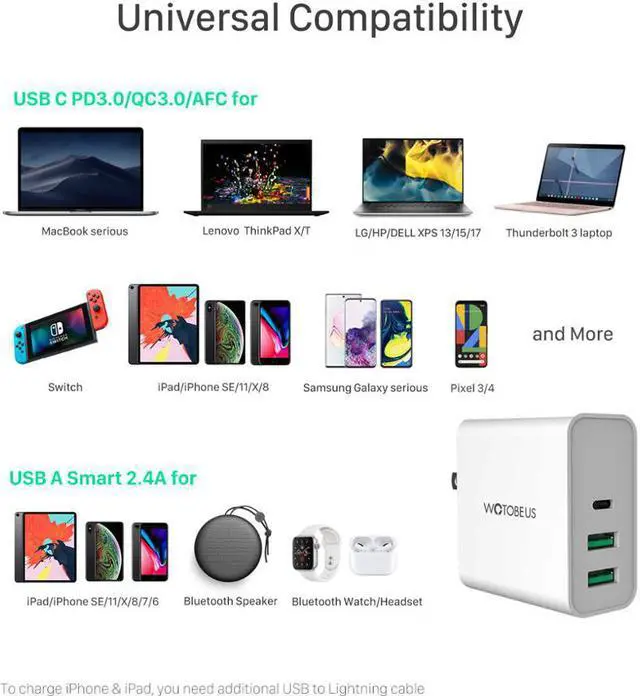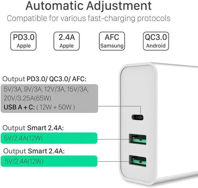 3Port 65W USB-C Power Adapter 3Port 65W TYPE-C USB-C Power Adapter,1Port USB C PD60W QC3.0 Charger For USB-C Laptops MacBook Pro/Air iPad Pro,and 2port USB A for Samsung iPhone PD3.0 Max 65W