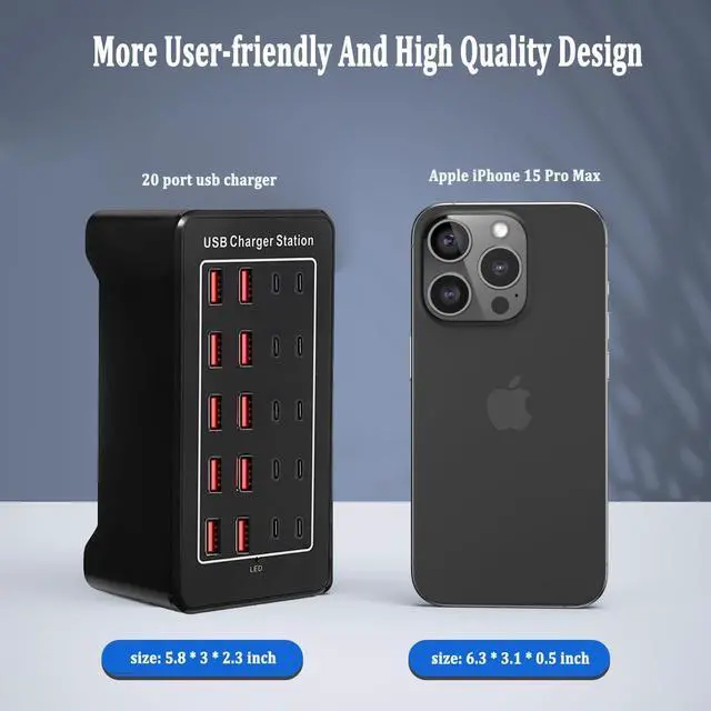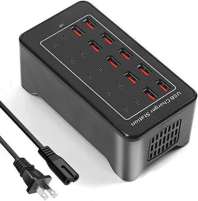 20 port usb charger: 10 port usb charging station + 10 port usb c charging station