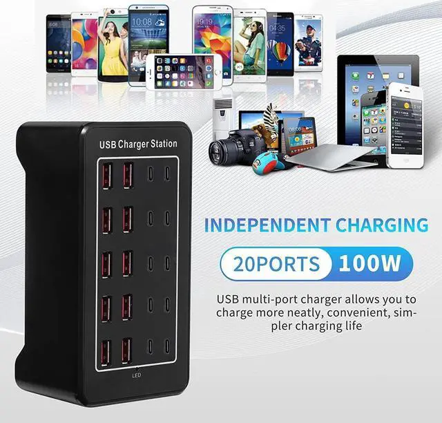 This 20 port usb charger block comes with 10 USB A and 10 USB C. You can charge the smartphones, tablets or other of USB-charged devices at the same time, being easy and simple in your daily life. Keeping everything in one place, convenient and organizes the pool of cables from your desk.