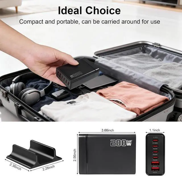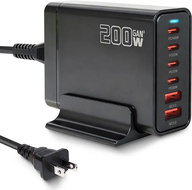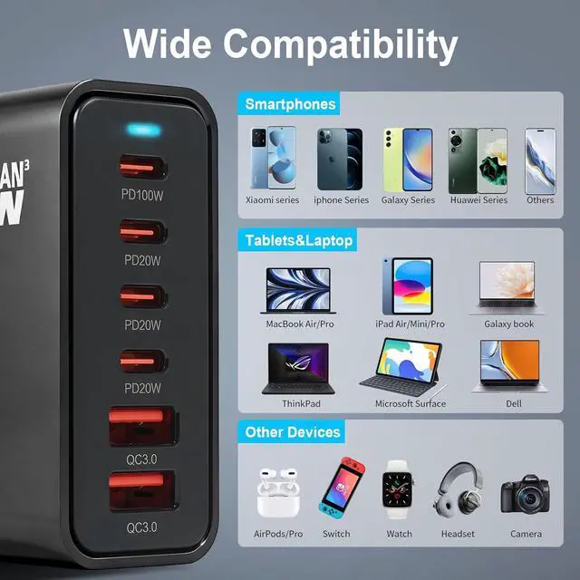 | Features | This charging station has 2 USB- A interfaces and 4 USB- C interfaces. Compatible with PD 100W/PD 20W/QC 3.0/QC 18W, you can charge your devices simultaneously at 6 fast charging ports, helping you create a clean and orderly desktop, allowing you to truly experience the time-saving experience of fast charging multiple devices at the same time! |