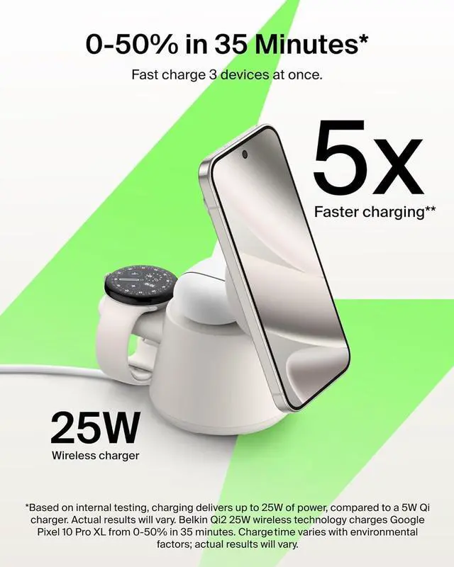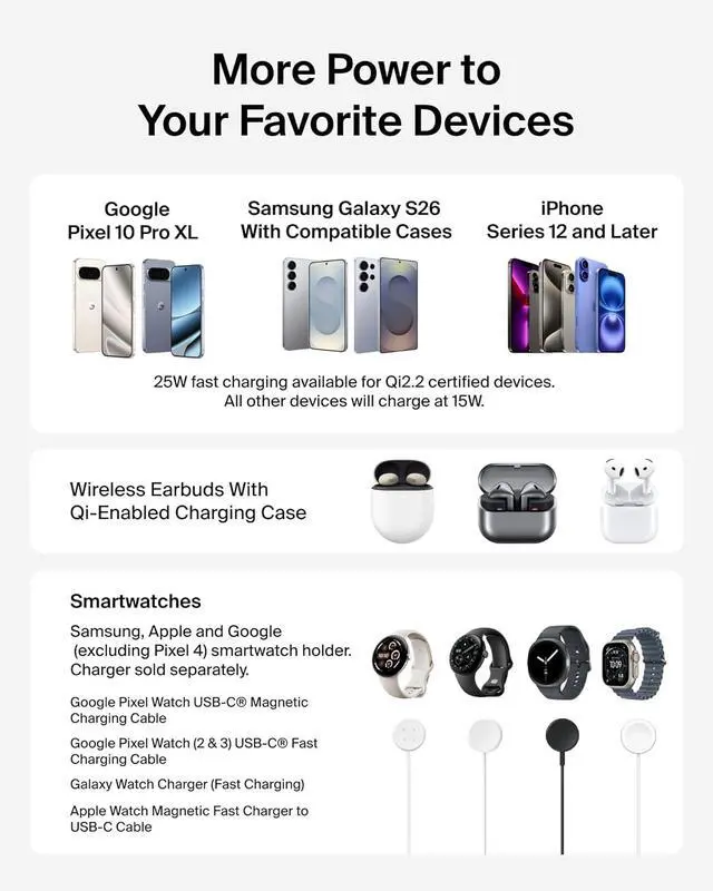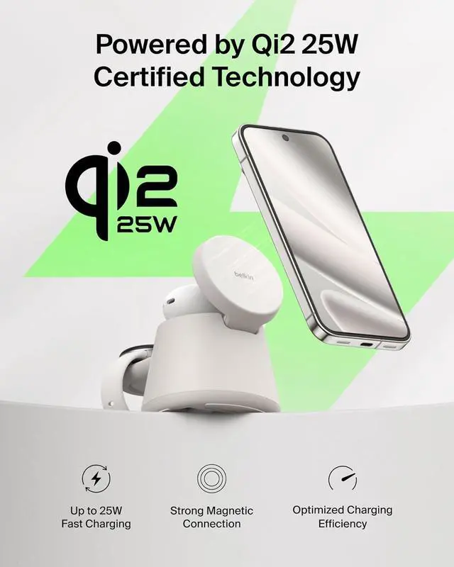 FAST CHARGE WITH LATEST Qi2 TECHNOLOGY: Easy magnetic alignment delivers up to 25W wireless charging for Galaxy, Pixel, and other Qi2-compatible Android devicesoptimized for fast, efficient power with secure magnetic connection and reliable performance.*