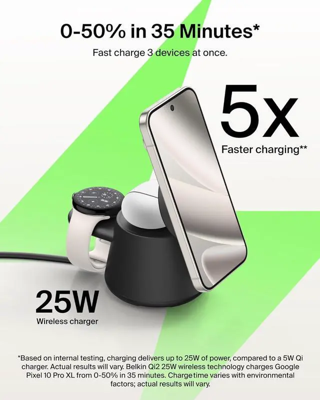 FAST CHARGE WITH LATEST Qi2 TECHNOLOGY: Easy magnetic alignment delivers up to 25W wireless charging for Galaxy, Pixel, and other Qi2-compatible Android devicesoptimized for fast, efficient power with secure magnetic connection and reliable performance.*
