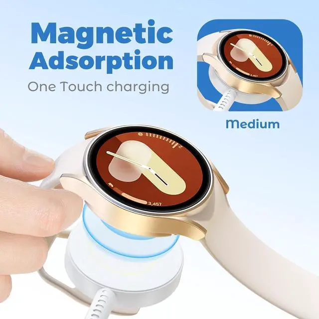 • [Magnetic Secure Connection & Compact]: The Cndons smart watch charger for samsung uses a strong magnetic alignment to keep your Galaxy Watch firmly attached while charging, preventing accidental drops or disconnections. Lightweight and portable design fits easily into any travel bag, making this galaxy watch charger the perfect companion for work, home, or on the go.