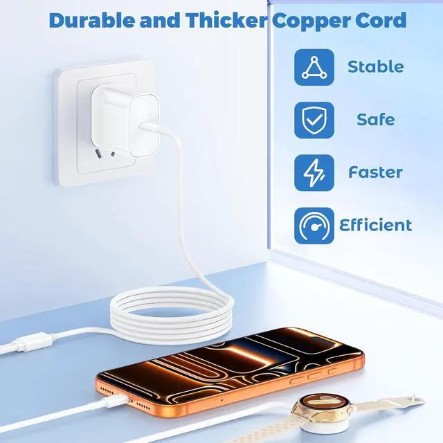 • [What You Get]: [1-Pack] 2-in-1 6FT Watch Charger cable cord for samsung galaxy watch & [1-Pack] 45W super fast charger block for samsung phones & 18-Month replacement. Please get in touch with us while you have any question and we w